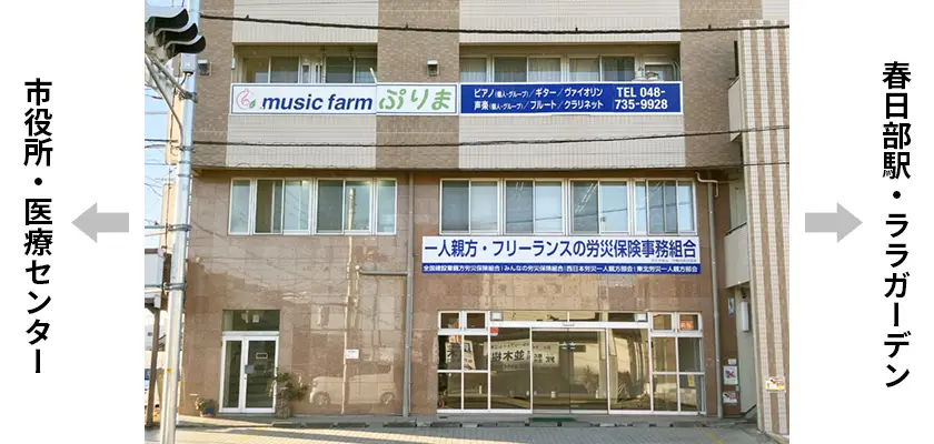 なお、教室名の「Music Farm」は「音楽の農場」という意です。「ぷりま」には、春日部の「春」(Primavera)、「初心」(Prima)という意を込めました。